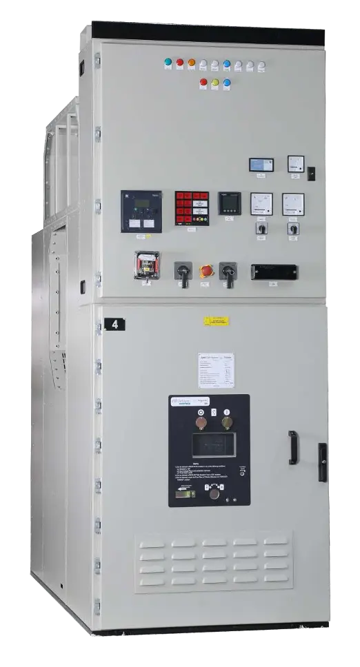 - Metal partitions segregating breaker, bus bar and cable compartments, with separate LV box.