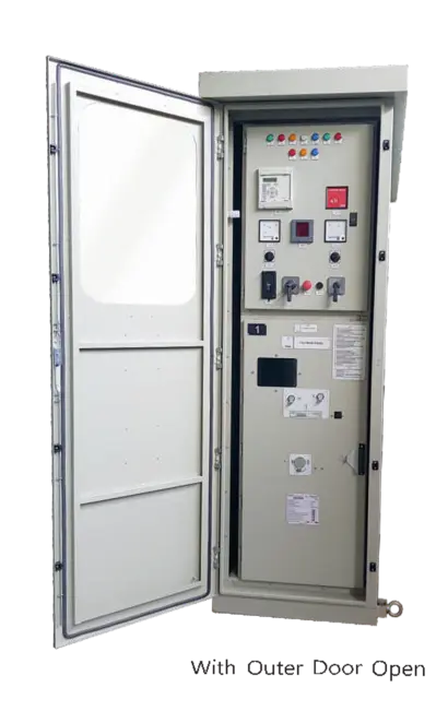 - Normally offered in powder coated finish, it can be optionally offered in Aluzinc/GI enclosure